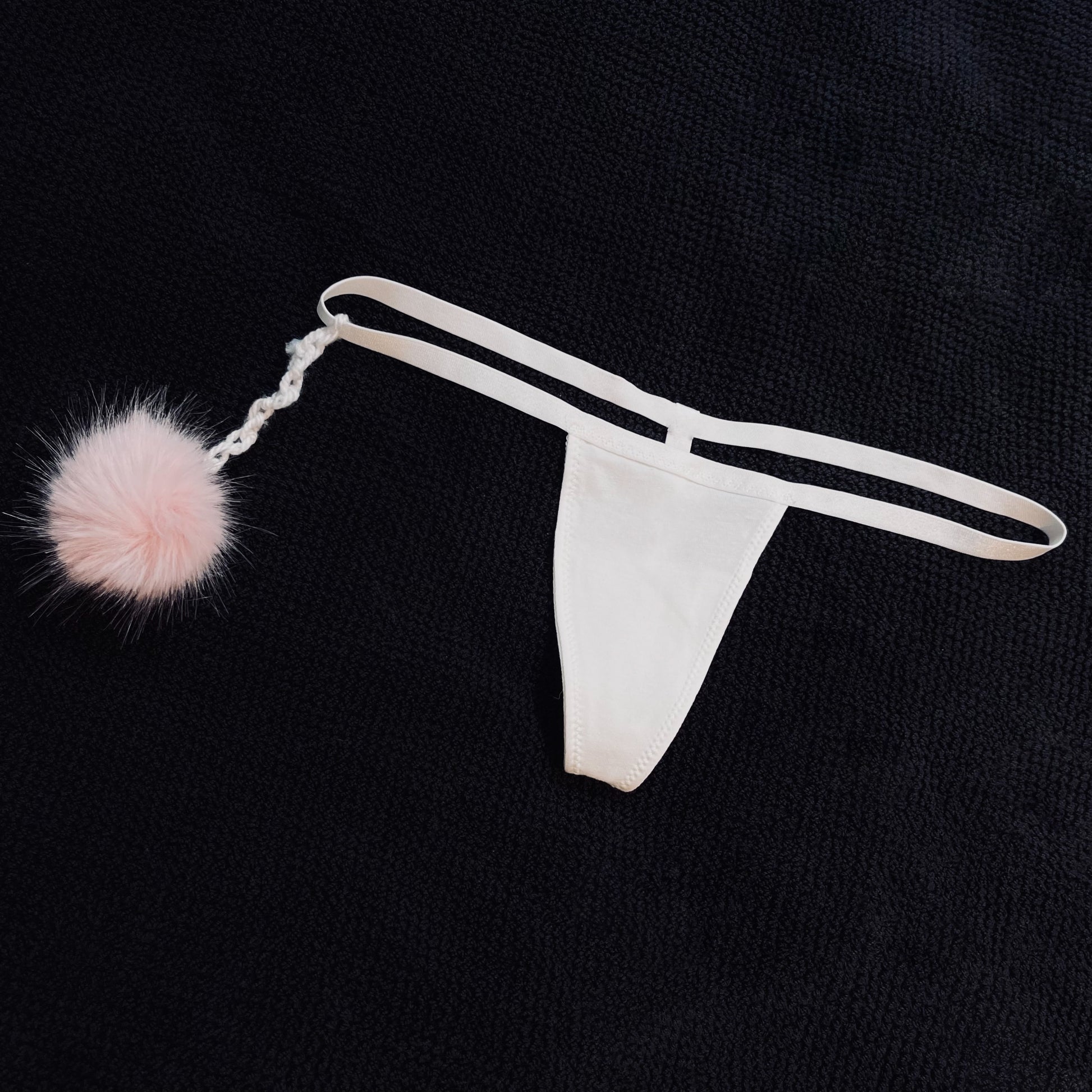 Baby Pink Mink PomPom ⋆ White Thong